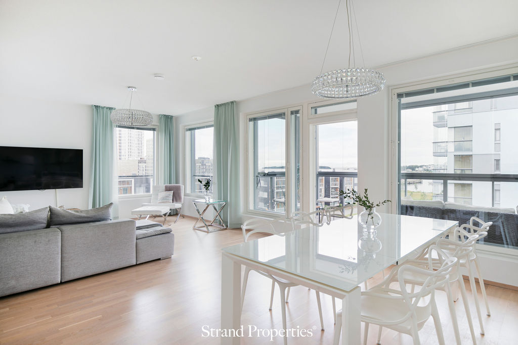 Upea kulmahuoneisto merimaisemin Jätkäsaaressa.
