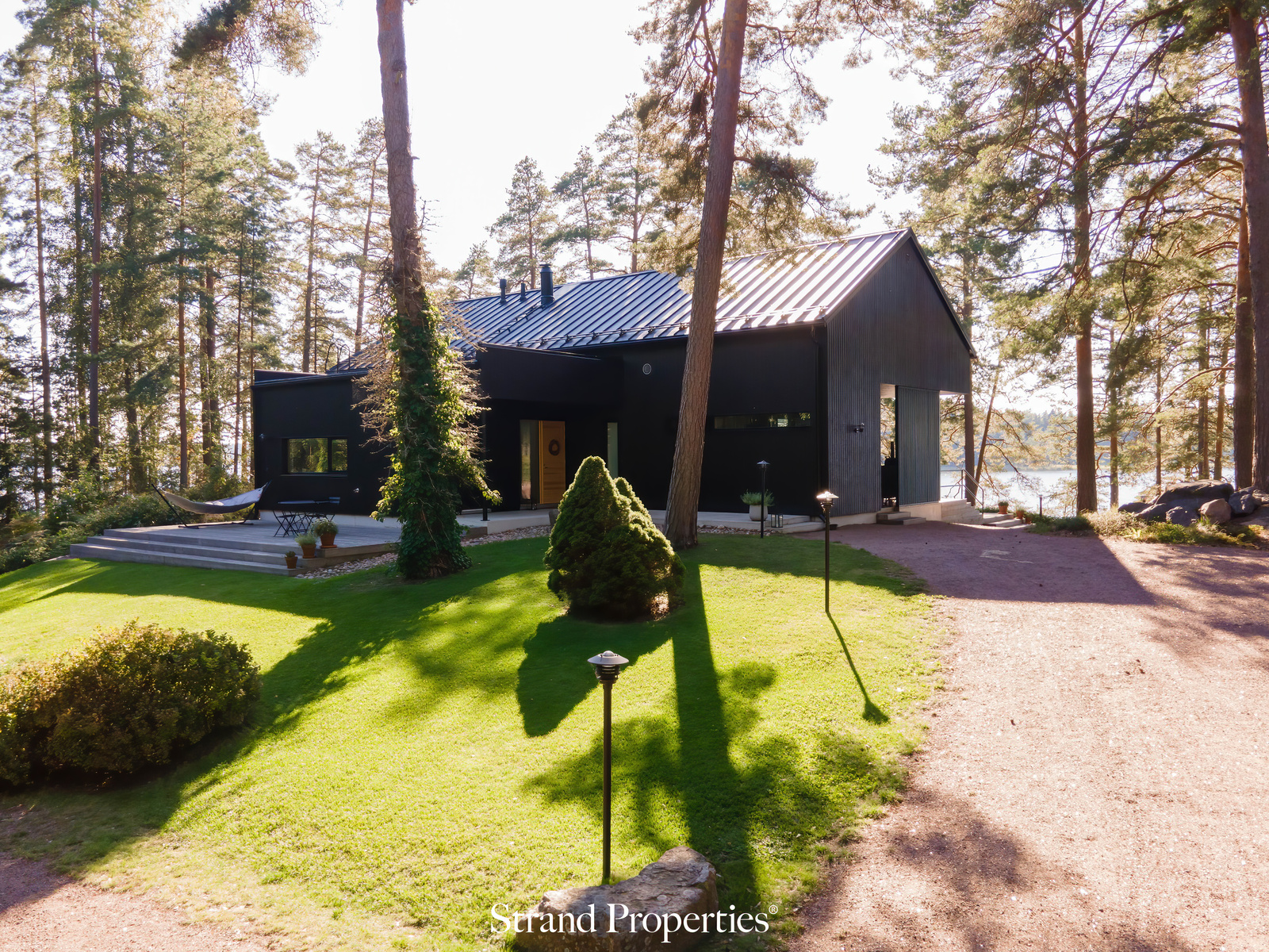 Arkkitehdin suunnittelema koti edustaa skandinaavista tyyliä parhaimmillaan. Laadukkaat materiaalit, huolellinen viimeistely ja avarat näkymät luovat ajattoman kokonaisuuden. Olohuone, ruokailutila, keittiö avautuu suurin ikkunoin merelle, ja tilaa täydentävät tyylikäs takka sekä näyttävä, käytännöllinen keittiö kivitasoineen ja integroiduilla kodinkoneineen. Neljä makuuhuonetta tarjoavat kauniit maisemat, ja kylpytilat sekä sauna on toteutettu laadukkain, ajankohtaisin materiaalein.