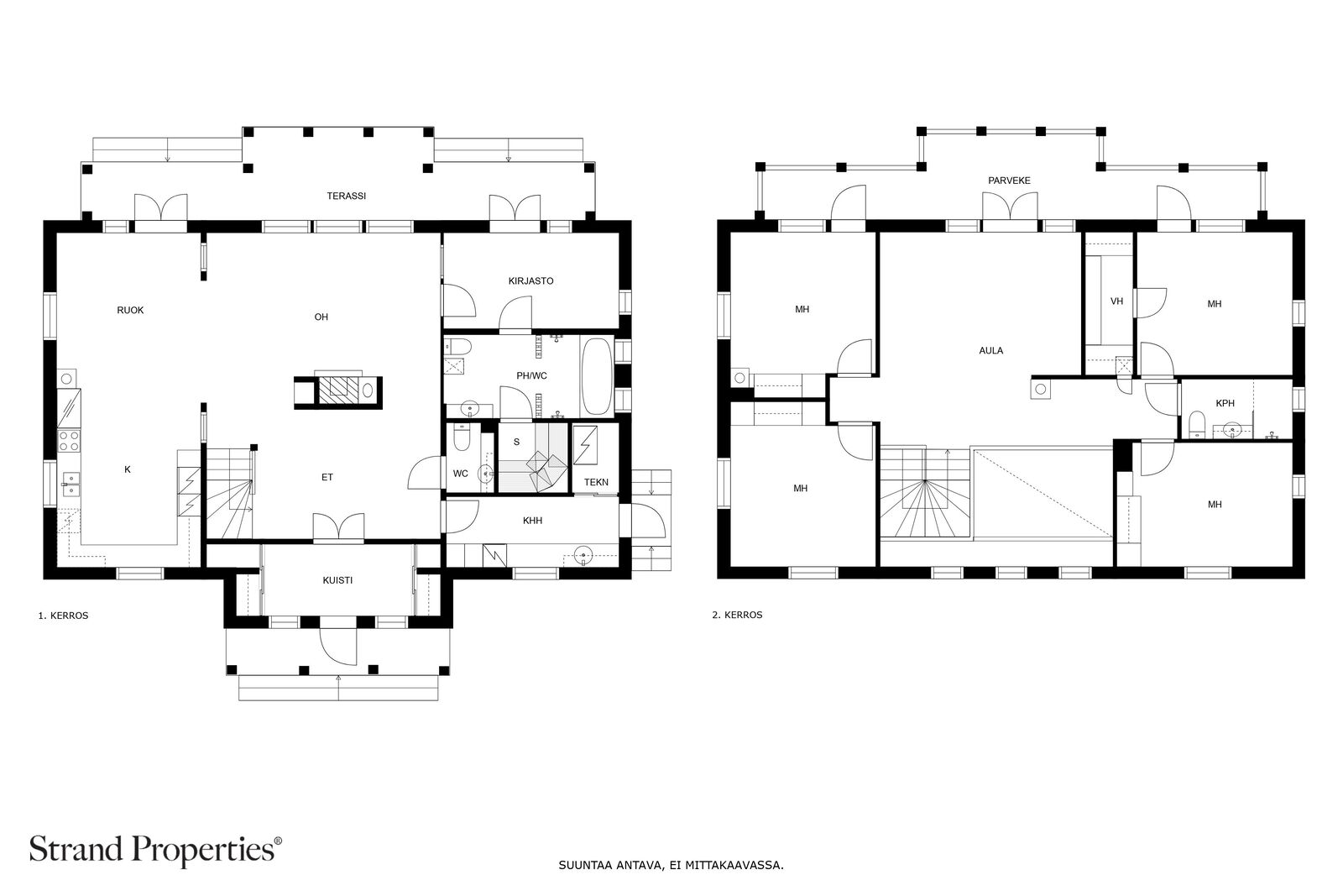 Kylpyhuoneita on kaksi, yksi kummassakin kerroksessa. Alakerran hulppealla kylpyosastolla nautitaan arjen ylellisyydestä kylpyammeessa tai höyrysaunassa rentoutuen. Erillinen wc ja kodinhoitohuone tuovat käytännöllisyyttä arkeen. Takapihan yksityisessä pihapiirissä odottavat uima-allas ja perinteisellä kiukaalla varustettu ulkosauna – täydelliset puitteet kesäpäivien viettoon.