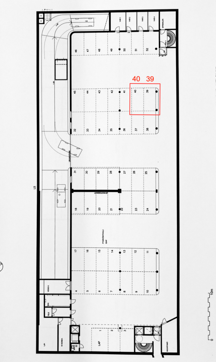 • Taloyhtiön autopaikat Piha-autopaikkoja: 2, Autohallipaikkoja: 104