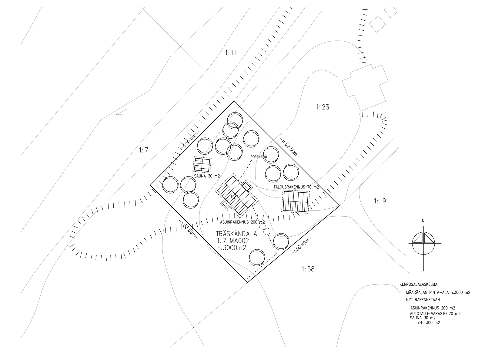 1) Myydään lohkottavaksi n.3000m2 määräala, osoitteessa Kelokuja 50, 02480 Kirkkonummi.